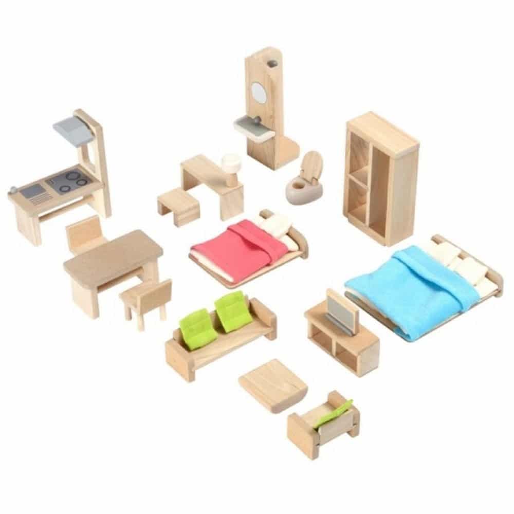 Wooden Green Dollhouse with Furniture - Plan Toys