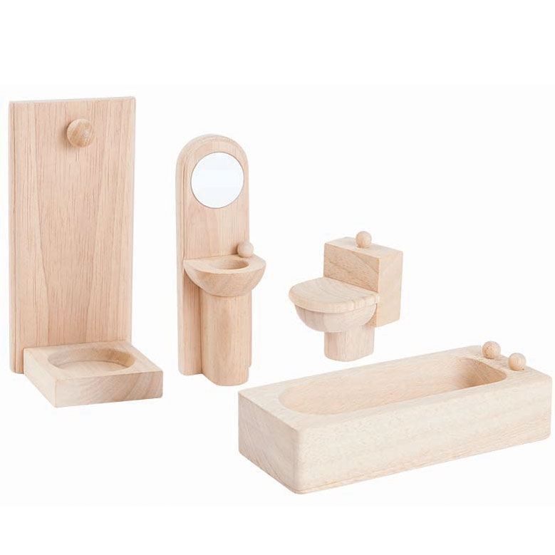 PlanToys Classic line of dollhouse furniture is made from natural wood and fabric. This line of doll house furniture is serene and calming with the grain of the rubberwood showing through. This set is part of the PlanNaturals Classic Wooden Toy Collection and complements PlanToys dollhouses natural wood construction.
