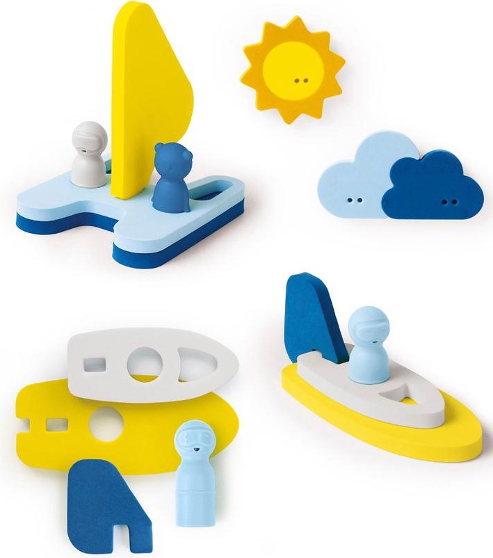 Every Everything is possible with this fun bath puzzle. Make the playground even bigger and combine it with other sets. Assembling the various shapes helps improve children's fine motor skills and stimulates their creativity and imagination. All the shapes are made out of a soft foam, so they stay afloat. The set also contains 3 finger puppets made from sustainable plastic.