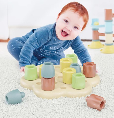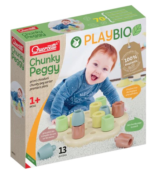 Cunky Peggy is an educational creative composition game, with jumbo pegs to be inserted or stacked. This set has been specially designed to meet your child's first developmental needs. Children mix, match and stack pegs to make colorful towers. With its attractive design and rounded shapes, the Chunky Peggy will stimulate hand-eye coordination while developing manual dexterity.