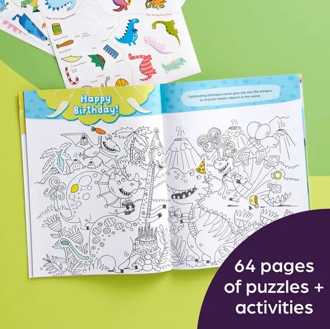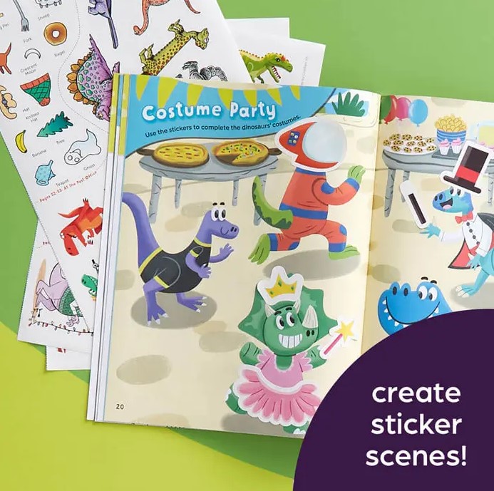 Over 190 stickers and colorful puzzles meet in this irresistible activity book. Kids can mix and match stickers to make their own unique dinosaurs and give dinosaurs fun costumes with clothing and accessory stickers. They can also use the giant dinosaur stickers, each approximately 2 inches tall, to complete Hidden Pictures puzzles and mazes, or decorate playscenes.