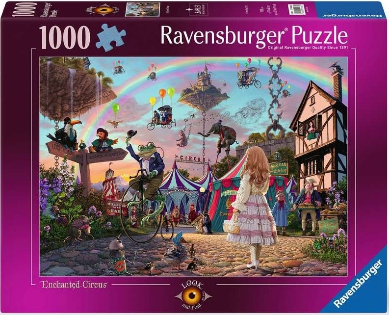 How very strange! It looks like the Scarborough Fair of days gone by, but it seems the animals have taken on more human roles, with Leo the Lion as the ringmaster! Why is that friendly frog riding a penny-farthing bicycle, and who tethered that castle and those houses floating in the air? An intriguing concept and design, artist Steve Read has cleverly hidden 14 elephants within; can you find them all? This impressively illustrated puzzle makes a thoughtful gift for any fan of fantasy — enjoy!