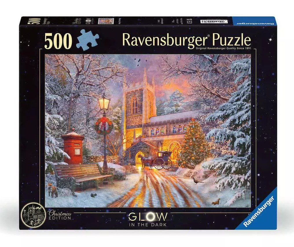 Give thanks for the gifts of the season and the time to unwind with our “Magical Christmas” 500-piece jigsaw puzzle! This serene scene captures the beauty of an old, stone church set in the English countryside. A bright red Penfold pillar letter box sits behind a wide bench where congregants may rest. The horse and buggy await their rider, who has slipped inside for quiet reflection. Just as the vibrant stained-glass windows glow, you’re sure to radiate joy as you complete this lovely scene!