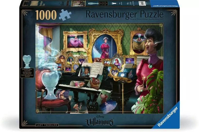 Part of our Disney Villainous line, and a fun puzzle for every fan! The image includes a rendering of the corresponding Disney Villainous game’s sculpted piece; Lady Tremaine’s light-blue mover. This 1,000-piece jigsaw puzzle combines captivating imagery with clean-cut pieces and Ravensburger’s perfect interlocking fit for a most pleasurable puzzling experience. Create memorable moments with Ravensburger premium puzzles!