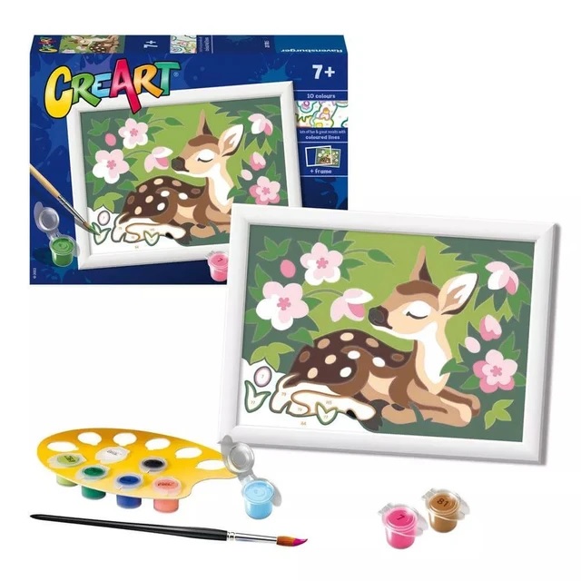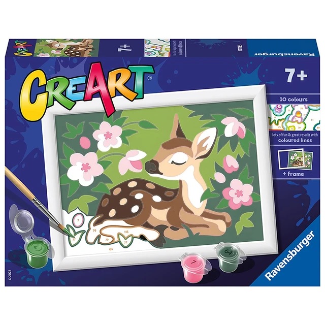Let your child relax and take some time to smell the flowers with this delightful “Floral Fawn” CreArt Painting by Numbers set!