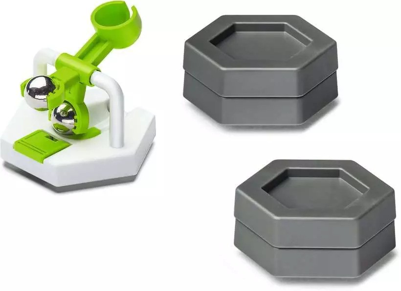 With the GraviTrax Element Scoop, the ball flies over the built GraviTrax track. This is a spectacular way to overcome obstacles and height differences in the track. When a ball rolls into the scoop, a lever is released so that the arm with the ball flies upwards and throws the ball away. Combined with any GraviTrax starter set, the Scoop element brings a whole new level of momentum and energy to the ball track.
