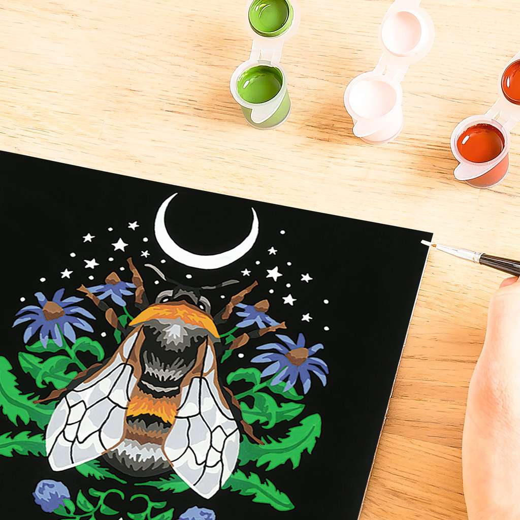 Go to your peaceful place with no screens and no demands as you paint this luminous Bee under a crescent moon and twinkling stars. Our delightful CreArt paint-by-number kit makes it easy! Simply fill in each clearly numbered section and watch the image emerge. The prepared patterns and high-quality, odorless acrylic paints ensure excellent results as you create your personal masterpiece. De-stress and find success as you discover the joy of art in your heart today!