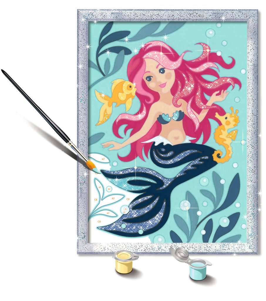 Watch your child’s imagination and creativity sparkle beneath the magical sea with a mesmerizing “Enchanting Mermaid” CreArt Painting by Numbers set!