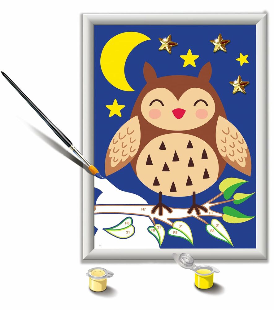 Make a wise move and give your child a fun and satisfying activity with our “Cute Owl” CreArt Painting by Numbers set, complete with sparkling gems! Includes a frame to proudly display you budding artist's talent.