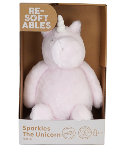 Resoftables are the world’s softest toys using 100% household plastic waste. Each 14” Resoftables toy is made from approximately 11 recycled plastic bottles.