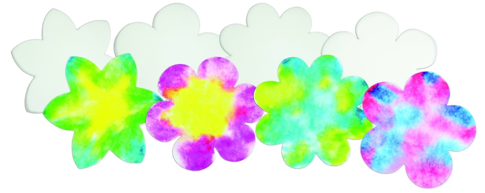 Color diffusing paper is a fabric-like paper with great texture. Beautiful results are guaranteed. Spritz liquid watercolor paint or food color over paper and watch the colors flow and blend to create spectacular patterns and effects. Once complete, hang in windows, from ceilings, on bulletin boards or anywhere that could use some extra color. Color Diffusing Paper Flowers make a great nature craft or seasonal craft at home or in the classroom. Great for all ages and skill levels.