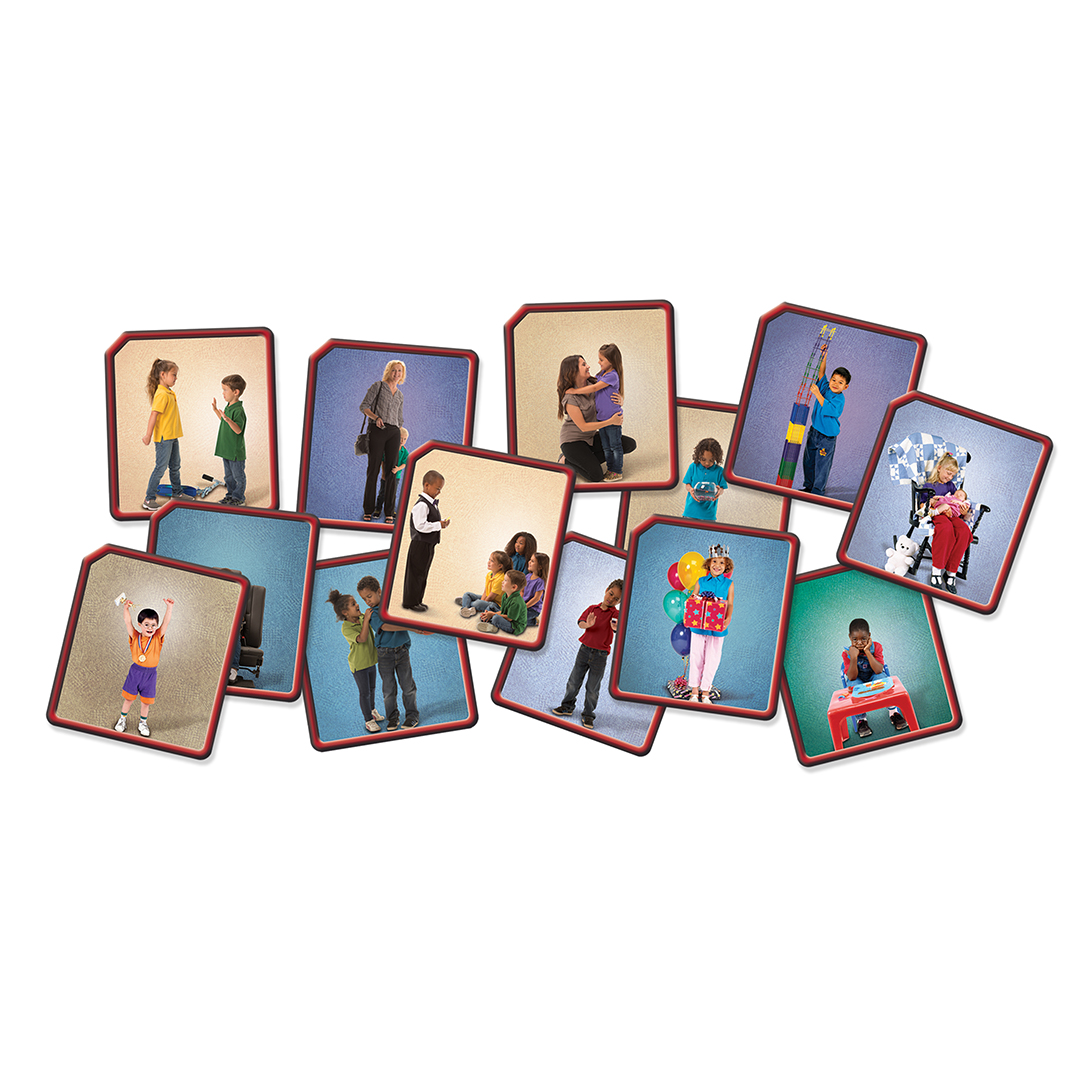 24 images printed on durable cardstock encourage students to connect with their emotions. Foster empathy by asking students to describe the feelings pictured on each card. Use the cards as story starter prompts! Works well as a supplement to our R49591 Exploring Emotions Super Doll.