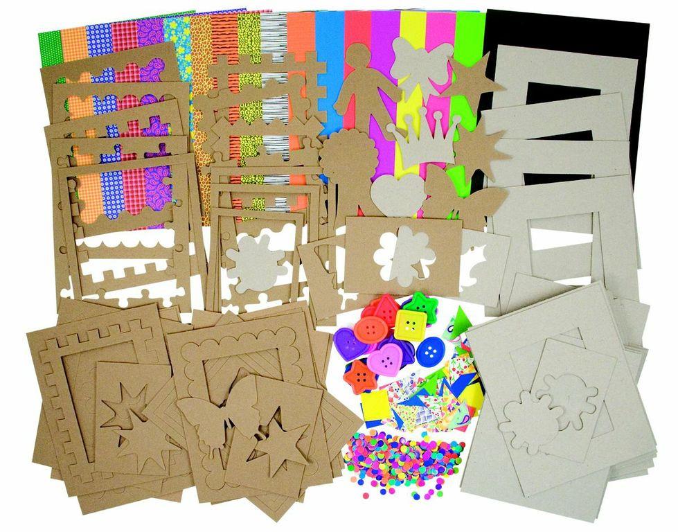 Create charming frames with this comprehensive group activity kit. We have included a huge variety of sturdy chipboard frame shapes that can be mixed and matched to create a range of frame ensembles. Pick some borders to glue onto your base, accent with the included vibrant patterns paper and dress it all up with mosaics and buttons. Completed frames are 7¼ x 9¼” (18 x 23 cm) and work perfectly with standard 4 x 6” (10 x 15 cm) photos.