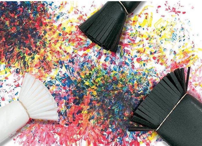 Wide bristle foam brushes let you stamp, twist or swipe. Two different thicknesses and sizes. Roll up the 7 or 15″ (18 or 38 cm) panels or wrap them around a block or cardboard tube.