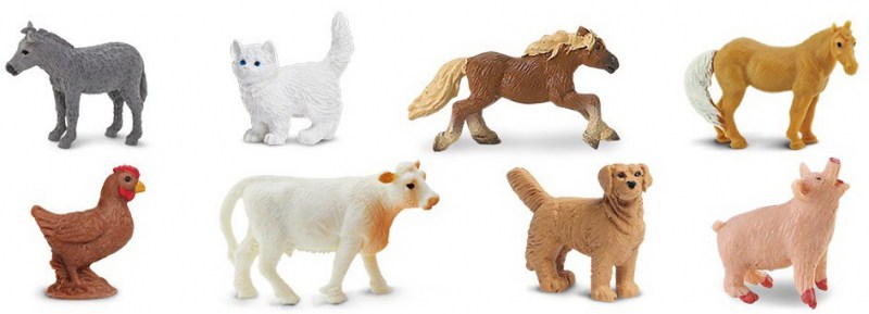 Farming has been a way of life since prehistory, when hunter-gatherer foragers settled into communities. All farm animals are domesticated versions of wild creatures. The settlers who left busy cities on the U.S. east coast took a variety of animals with them to homestead. Horses were used for riding and for pulling. Donkeys were draft animals as well. Cows provided milk. Pigs provided meat and also helped keep the wilderness at bay with their foraging. Chickens provided eggs and meat. Dogs were helpful companions for hunting and they warned of wild animals. Cats were needed to keep mouse and rat populations at bay. All in all, the classic farm animals all had important uses on these self-sufficient farms.