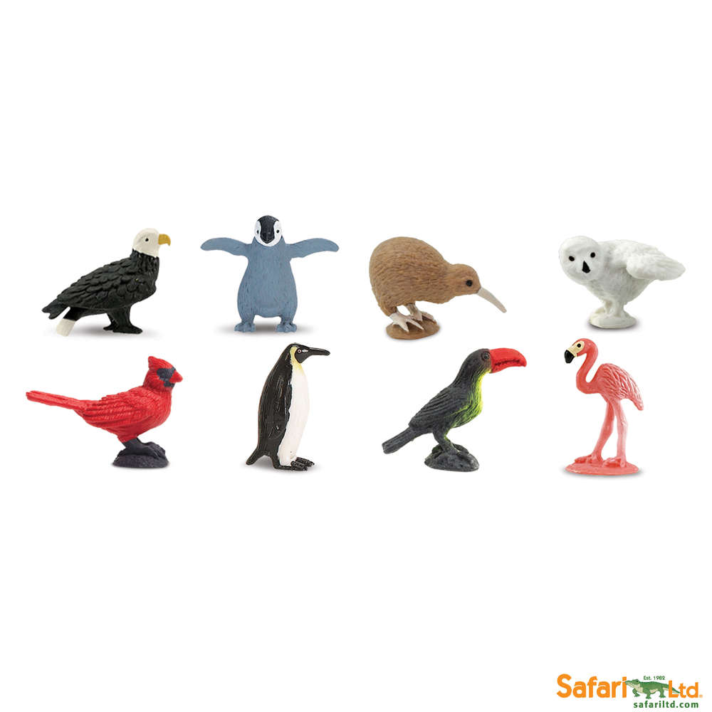 Birds are a remarkably diverse group of animals that come in a wide range of shapes, sizes and colors. These feathered creatures are actually considered a subgroup of reptiles, and are actually believed to have evolved from dinosaurs! This Good Luck Minis Fun Pack features eight representatives of the bird kingdom, including the predatory snowy owl, the iconic bald eagle, the long-legged flamingo, the colorful cardinal, an emperor penguin and its chick, the flightless kiwi, and the large-billed toucan.