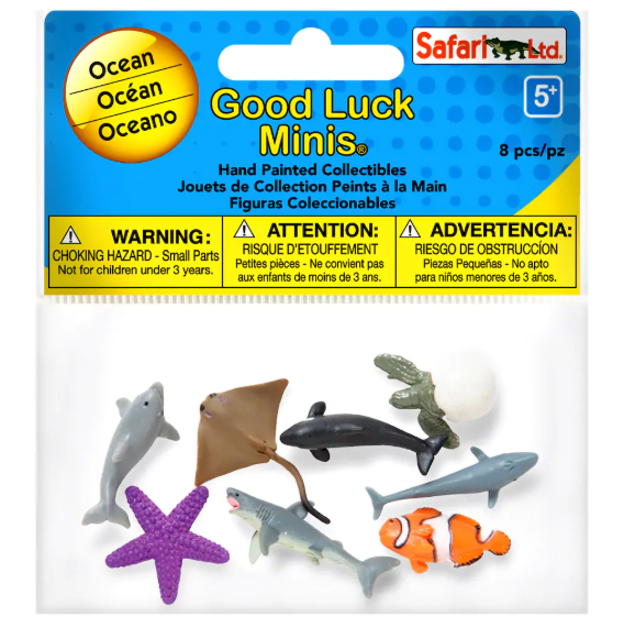 Saltwater dwellers from around the world come together in this Ocean Fun Pack. Featured undersea creatures are the Blue Whale, Dolphin, Clown fish, Great White Shark, Killer Whale, Sea Turtle Hatchling, Sea Star, and Cownose Ray. The creatures in this Ocean Fun Pack quite literally span the globe. Not only are they fun toys, they make great decorations for birthday parties, they are useful in school lessons and projects, and they are educational because of their realism.