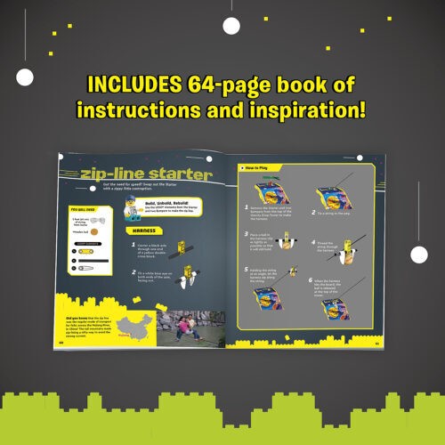 But it doesn't stop there. Build and rebuild activities that include a gravity labyrinth, zip-line starter, grabber claw and more. Fun, non-fiction content highlights the crazy machine inspirations of Rube Goldberg and creative ways to theme your own pinball-style arcade game. Learn about famous physicists and "back to the junk drawer" ways to customize and create chain reactions with elements from home. Physics is fun with this STEM kit that lets you roll, bounce, rebound, and rebuild with LEGO!