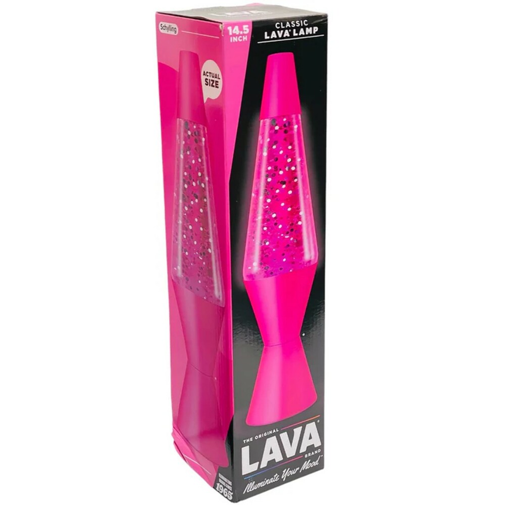 Tweens and teens wake up in their own pink dreamworld with this Barbie-inspired LAVA lamp! Feel stress melt away while enjoying the dazzling glow of this 14.5" matte hot pink lamp. The ever-changing, moving silver glitter is soothing to watch as it gently rises up and down in pink liquid. 25 watt light bulb included. Plugs into a power outlet.