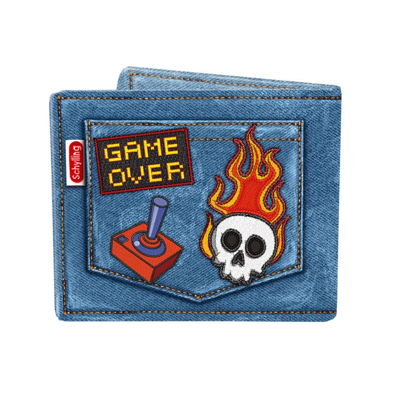 Durable/Lightweight/Compact/Portable/Fashionable. This bi-fold wallet is a good choice for daily use. Made of canvas and features printed patches. Comes in 3 assorted styles.