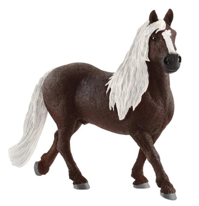 The Black Forest Stallion from the Schleich Farm World has a very dynamic pose. It shows how powerful and vigorous the Black Forest cold blood horses are. The animals are also known as “Wälderpferde” (Woods Horse) because they used to help with heavy forestry work. These days the lively Black Forest cold bloods are mainly popular as recreational horses and are used for riding or to pull carriages and sleighs. The Black Forest cold blood is very rare and therefore rated as an endangered native working animal breed.