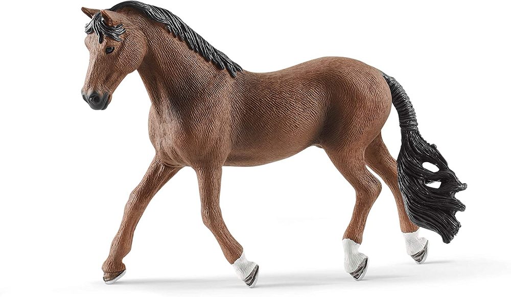 Trakehner are considered a very noble warmblood breed. The dynamic pose of the Trakehner gelding by Schleich Horse Club clearly shows the great liveliness, elegance and temperament of the horse breed. Trakehner are talented sport horses and often win medals at tournaments. Their stamina and intelligence means that their strengths lie primarily in eventing and endurance riding. Trakehners may only be crossed with Trakehners, English thoroughbreds and Arabian thoroughbreds.
