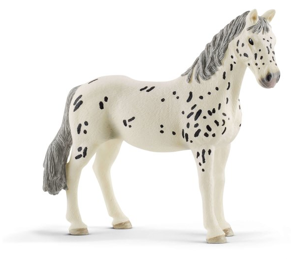 The coat of the graceful Knabstrupper mare from Schleich Horse Club is adorned with numerous spots. This is a typical feature of this horse breed. Knabstrupper are from Denmark and are great therapy horses. Even anxious people quickly come to trust them. Is it her funny, dark spots on her white coat or her charming nature? The lovingly painted Knabstrupper mare by Schleich Horse Club with her relaxed and friendly pose definitely invites you to play with her straight away. Knabstruppers have a big, slightly ram-nose head with calm, honest eyes.