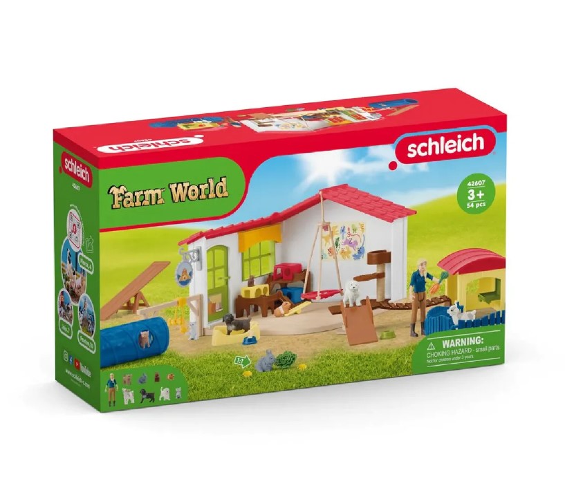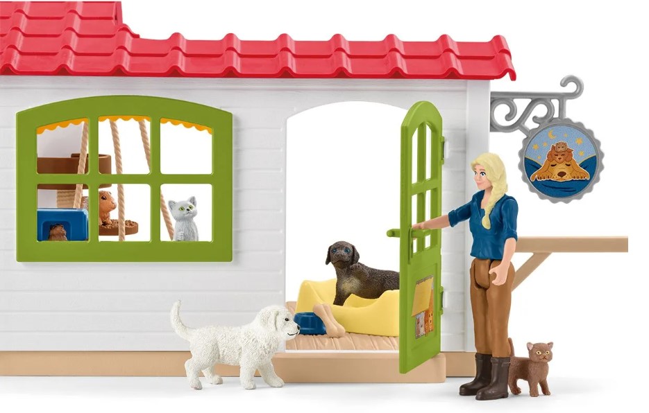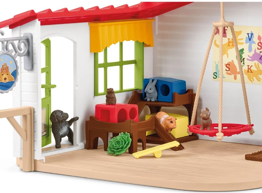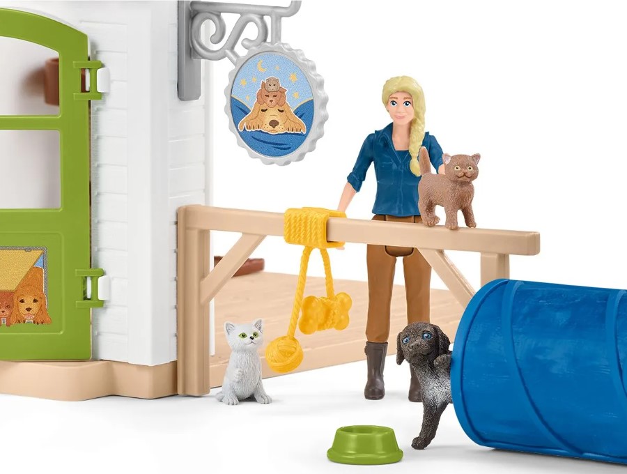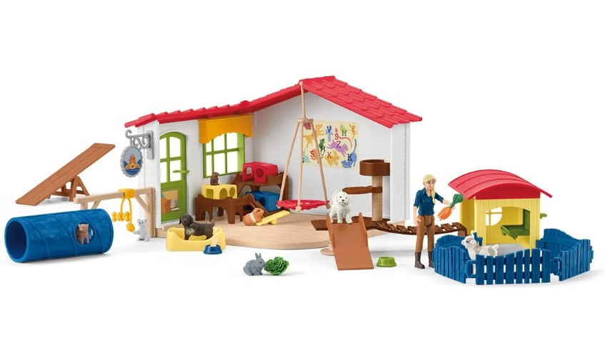All your animal friends will find a home in the schleich® Pet Hotel! Your schleich puppies can romp on the doggy obstacle course, the cats love their scratching post, and even the guinea pig is crazy its little seesaw. Check-in at the schleich® Pet Hotel is now open...stay as long as you like!