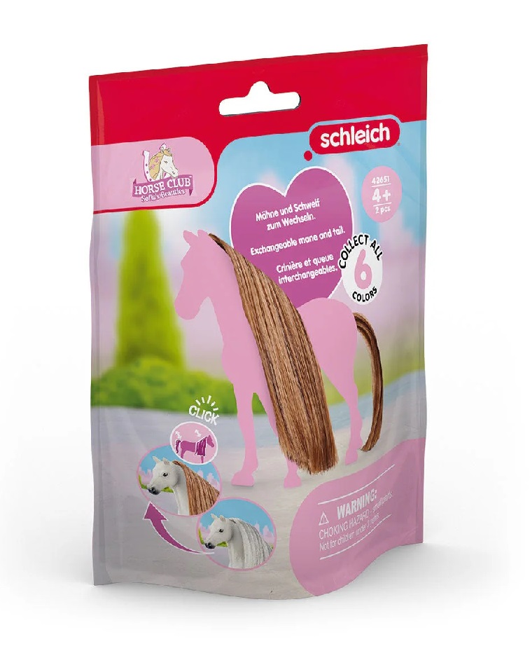 Amazing! The additionally available hair sets can be used with all the Beauty Horses from Schleich. That's because these horses have interchangeable manes and you can also remove and change the tail. What they all have in common is that they are beautifully shiny and very lush. All you need to do, is come up with some beautiful hairstyles! What hair color will it be today?