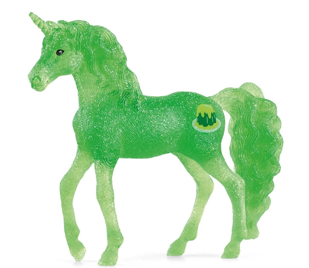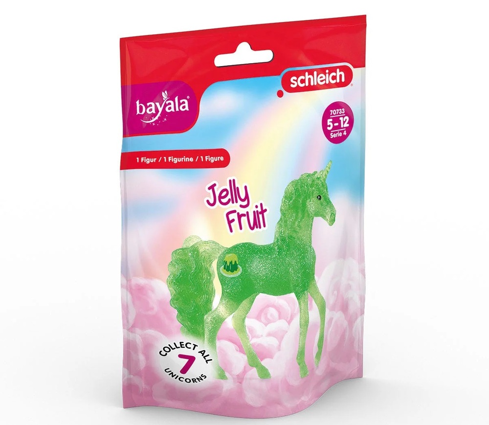 Hey, hey, hey! I'm Jelly Fruit Unicorn and here's a fun fact: I'm a HUUUUUUGE fan of wiggly, jiggly, brightly colored desserts! I'm one of 26 collectible unicorn toys from Schleich inspired by fruits, flowers, and sweet desserts. A sprinkle of magic and a twinkle of imagination...a delicious enchantment is stirring in the secret gardens of BAYALA Colorful unicorn foals with curious markings frolic in the wooded groves. It's the candy unicorns! Meet the newest addition - Jelly Fruit Unicorn!