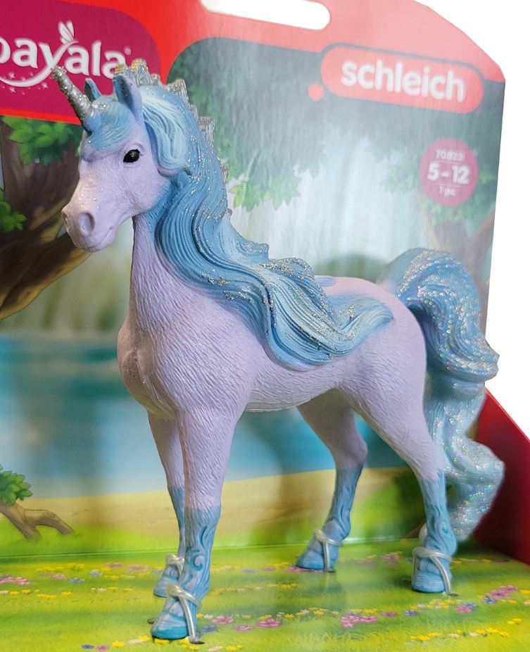 When the Flowy Unicorn Mare trots across the meadow, everyone turns to look at her. She looks beautiful. Her flowing blue tail looks like a waterfall and her lush glittery mane flows elegantly down her back. Everything about this gorgeous unicorn reminds us of water.