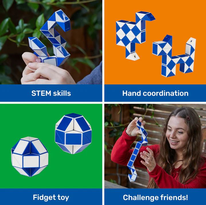 - One package contain 2 Rubik's Snakes that connect for more creative shape-building possibilities