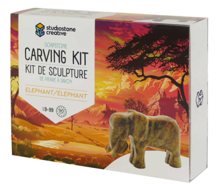 Carve your own soap stone animal from the provided shape! this kit is comes ready to use with everything you may need for your creation! With beautiful soft brazilian soapstone that ranges in colours of greens and browns