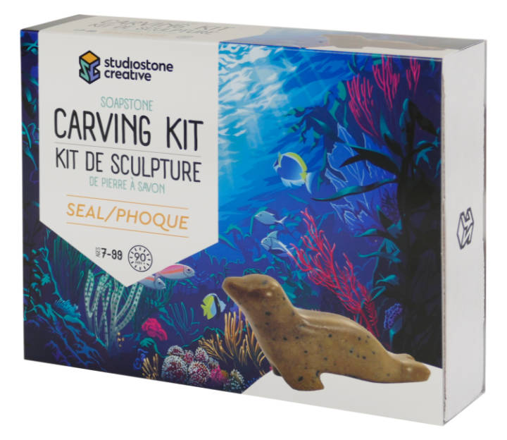 Carve your own soap stone animal from the provided shape! this kit is comes ready to use with everything you may need for your creation! With beautiful soft brazilian soapstone that ranges in colours of greens and browns