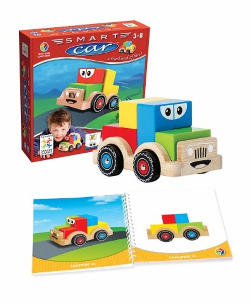 From SmartGames, the worldwide leader in single player puzzle games, comes Smart Car. Construct a car, block by block, flexing your logic muscles with this beautifully crafted 3-D wooden puzzle. Assemble the wooden blocks to match the challenge you have selected in the included booklet, but make sure that your car has only one set of eyes! With simple challenges for inexperienced builders to complex puzzles that will challenge skilled mechanics, Smart Car is a fun way to develop logical thinking skills and spatial reasoning abilities...and it doubles as a great rolling toy!