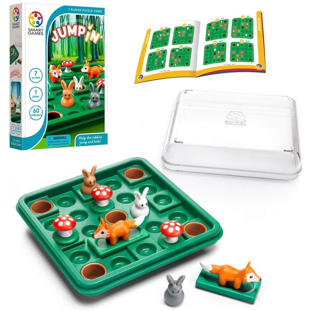 Rabbits jump over mushrooms and foxes around the board to find safety in the rabbit holes. A great game of logic and problem solving, with a portable case for easy travel.