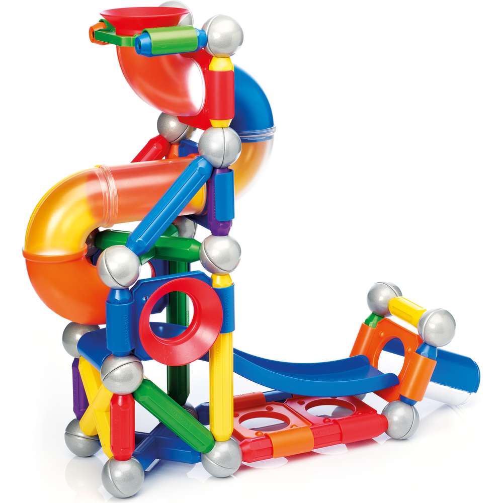 Build the ultimate ball track with this new SMARTMAX® magnetic construction set that contains an amazing 71 pieces! With endless options you can make all kinds of crazy machines and let the balls roll. Mega Ball Run contains special parts including tubes and X-shaped bars with 4 magnetic ends. All parts can be combined with all existing SMARTMAX® sets, creating an endless range of possibilities! Includes: 14 medium bars, 4 long bars, 4 XL bars, 4 X-bars, 24 metal balls, 9 panels with holes, 5 curved tubes, 1 ramp, 3 funnels, and 3 straight tubes.