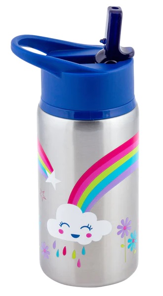 this stainless steel water bottle hold up to 18 ounces of liquid, feature a flip top spout to prevent leaks when closed and include an easy-to-hold carrying loop.