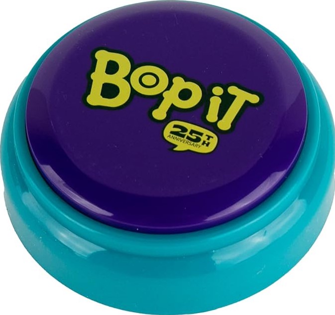 BOP IT fans from the 90’s and 2000’s can enjoy a brand-new challenge. The new BOP IT BUTTON is an iconic, simple, deceptively challenging game that requires intense focus as you progress. It looks like the “Easy Button” but it’s anything but easy! The 1 button version of the classic reflex game from 1997 is perfect for fans of all ages! Play the fun and intense solo game through 25 levels or the fastest BOP IT pass-it game with a friend!