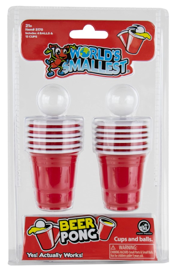 The ultimate adult drinking game Beer Pong is now available in the world’s smallest size! Challenge friends to a rowdy round of beer pong at your next party!