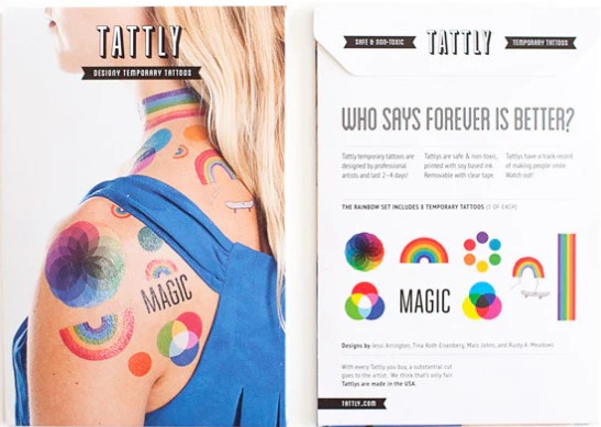 - Tattly temporary tattoos are designed by professional artists and last 2 to 4 days.