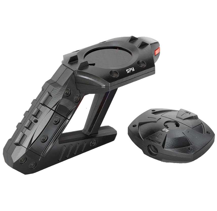 Find hidden treasures, track your suspects, mark secret meeting points, and create your own scavenger hunts. The transmitter emits silent, ultrasonic sound waves, which you can detect and track using the handheld detector. Hide the transmitter with a valuable object, an important case document, or a suspect, and then use the detector to search for its whereabouts. When you get close to the transmitter, the LED display on the detector lights up, leading you to the transmitter. Hone your tracking skills to become a super sleuth!
