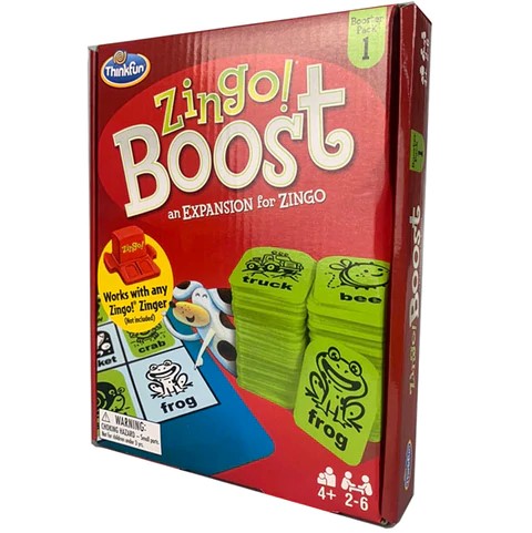 Zingo! Boost is the perfect way to add even more fun to your Zingo! Games. Each pack comes with an entire new set of tiles and cards. These expansions can be used with any Zingo! Zinger (not included) and offer a simple, affordable way to add new life to your Zingo! experience.