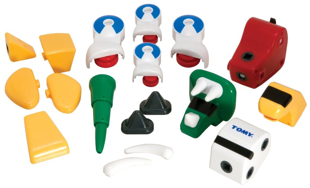 The Dino Constructables Set from Tomy Toys allows kids to build a motorized t-rex, triceratops, brontosaurus and mastodon. Hook up pieces to the power pack and the creations move. Includes 18 chunky pieces. Compatible with other Tomy Constructables Building Sets, sold separately. Requires 1 "AA" battery, not included.