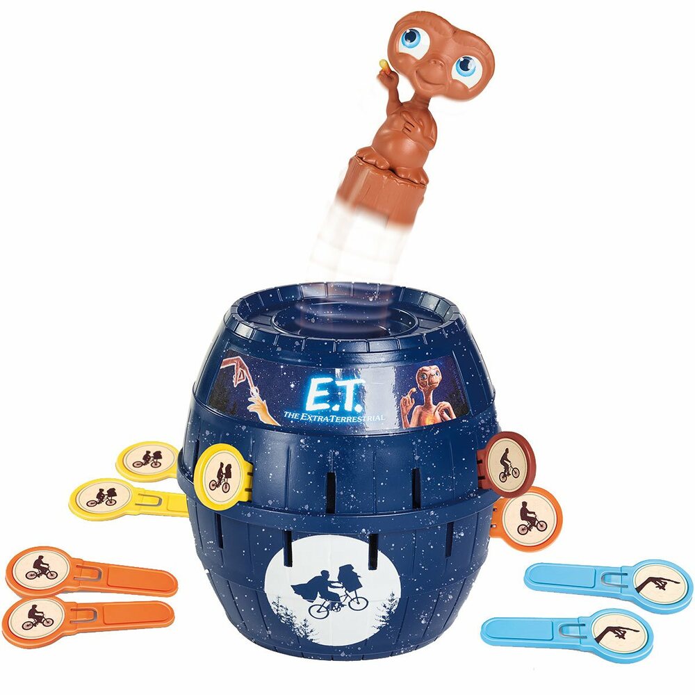 Earthings beware! If E.T. pops up, you will be out! Pop-Up E.T. is loaded with fun! Push E.T. into the barrel and take turns sliding your sticks into the barrel slots. But beware - if E.T. pops up you're out! This fun game will keep you guessing since the slot that will make him changes every time you play. Pop Up E.T. is a barrel of fun for 2-4 players and suitable for ages 4 years and up.