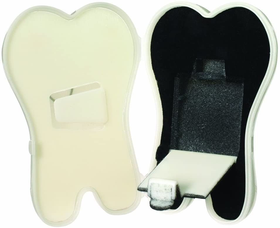 The Twinkle Toof Tooth keeps teeth safe until the Tooth Fairy comes. This cheery plastic tooth opens to reveal a special compartment to keep baby teeth safe. The tooth glows in the dark, making it easy for the tooth fairy to find. A convenient clip inside the tooth compartment holds the money that the fairy leaves behind.