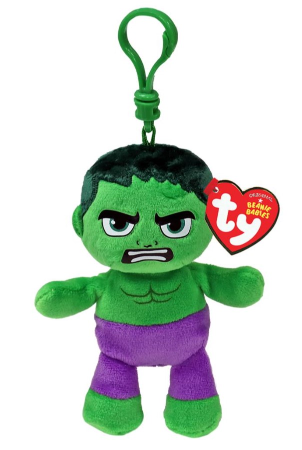 Introducing the adorable Marvel TY Beanie Boos Plush with Clip, now available in the beloved character Hulk. This plush is the perfect addition to any Marvel fan's collection. Attach it to your bag or keys for on-the-go cuteness and show your love for all things Marvel.