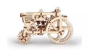 The UGEARS tractor is a rattling greeting from centuries past. No electronics - just plywood, a rubber band motor, and tons of fun! You can shift your tractor’s real transmission from ‘park’ to ‘low’ to plow for your spring planting or step it up to ‘sport’ gear and watch it race to the end of the field.