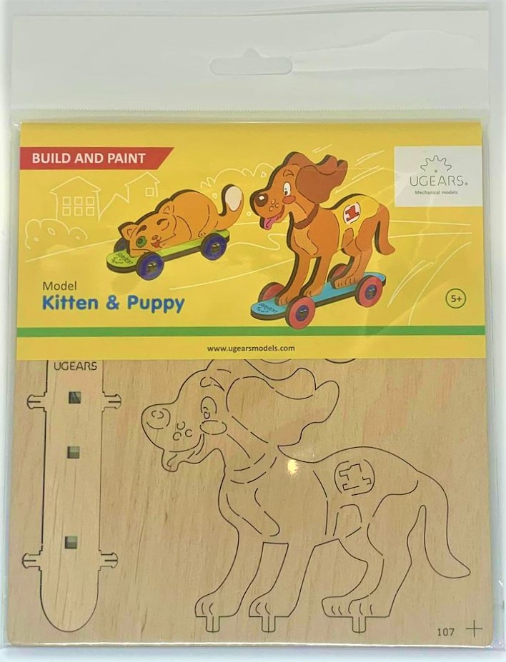 Color as you like: acrylic, gouache, watercolor, markers - you can use whatever you have. You can color the model by doing yourself, with friends or the whole family. Delicate contour lines on wooden parts show the contours of the cat and the dog skating boards, to make it easy to paint.