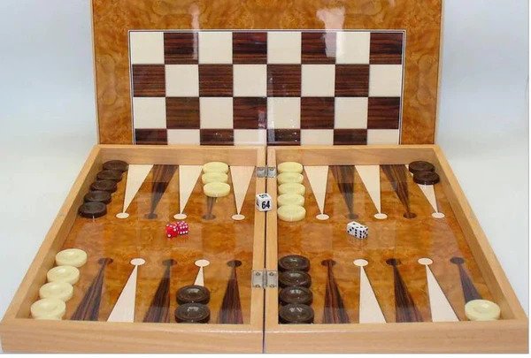 Backgammon - Burlwood Decoupage with Chessboard Back 19 Inch